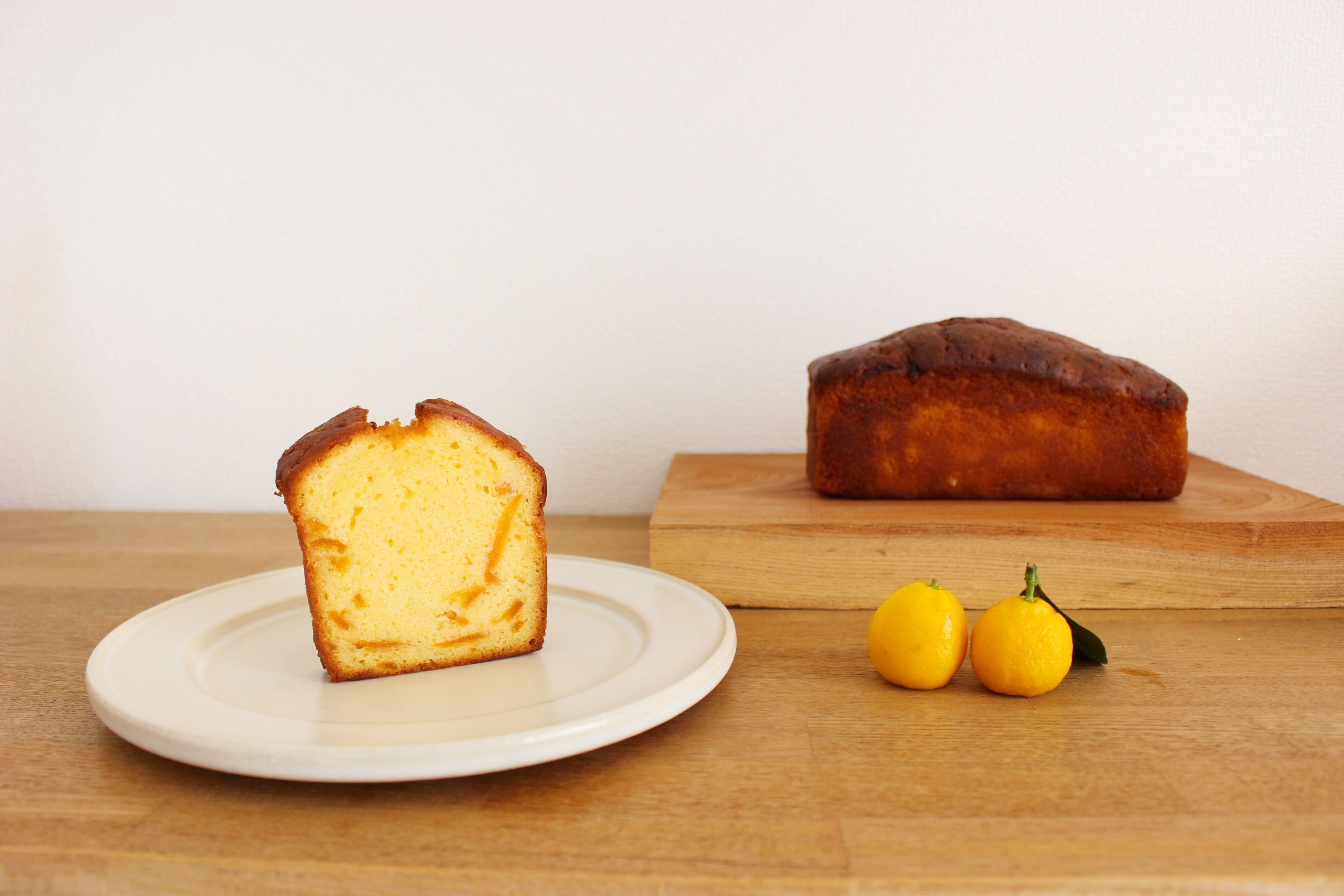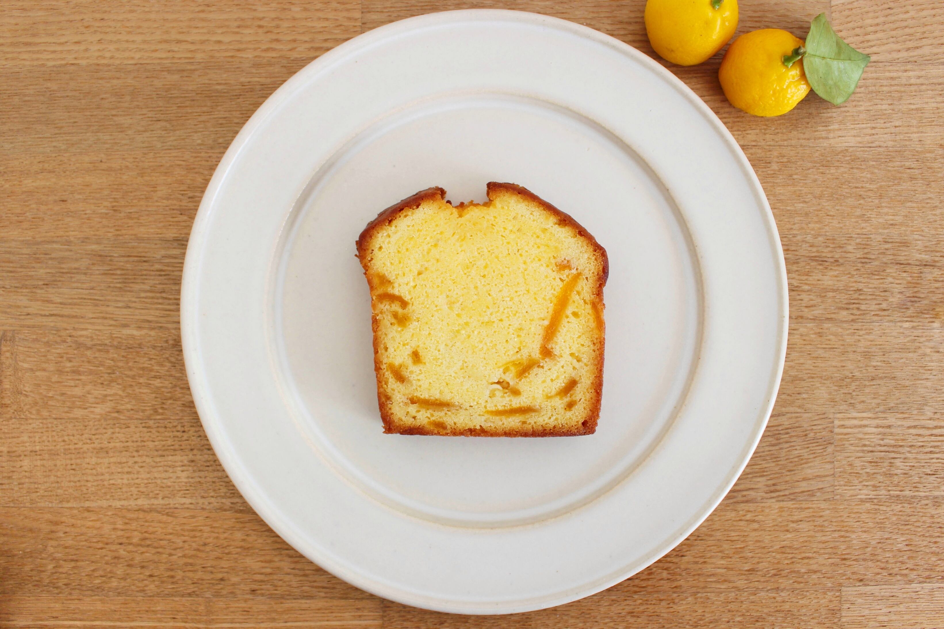 地元産の金柑を使用した自家製ピールをたっぷりと入れて焼き上げました。